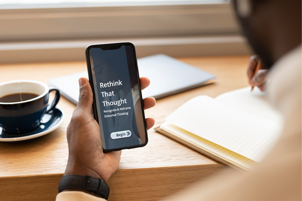 A microlearning module that teaches cognitive reframing through bite-sized interaction, mobile-first design, and simple guided practice.